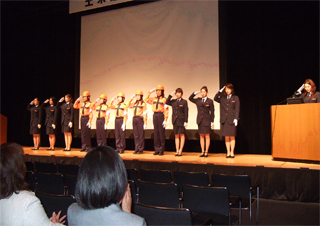 ブレザーの正装服着用は前期から継続の隊員。そして、第5期隊に新たに加わった新隊員からパトロール服を